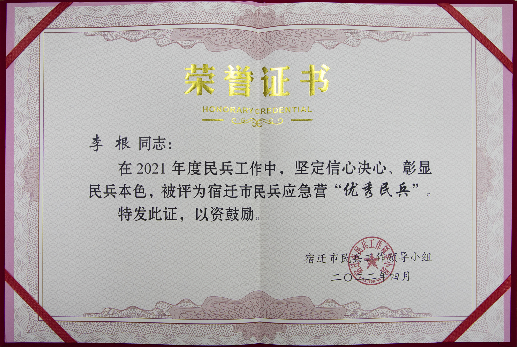 民兵,作為中國人民解放軍的重要助手,是維護(hù)國家安全穩(wěn)定不可或缺的國防力量。江蘇聯(lián)合水務(wù)科技股份有限公司宿遷供水公司做為宿遷地區(qū)重要的民生企業(yè)一直以來高度重視民兵建設(shè)工作,連續(xù)多年選派優(yōu)秀員工投身民兵隊(duì)伍,切實(shí)扛起企業(yè)民兵建設(shè)的責(zé)任擔(dān)當(dāng)。近日,我公司李根同志在民兵軍事訓(xùn)練過程中表現(xiàn)突出,成績優(yōu)異,被宿遷市民兵工作領(lǐng)導(dǎo)小組評為宿遷市民兵應(yīng)急營“優(yōu)秀民兵”。這不僅是對李根個(gè)人能力與素質(zhì)的肯定,也是對公司多年來支持民兵建設(shè)工作的認(rèn)可。