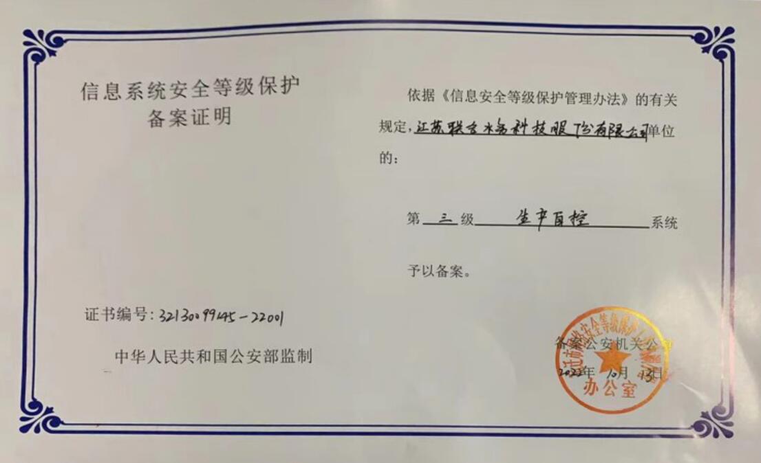 等級(jí)保護(hù)是我國信息安全基本國策,是落實(shí)監(jiān)管要求的重要舉措,江蘇聯(lián)合水務(wù)科技股份有限公司宿遷供水公司將會(huì)繼續(xù)做好信息網(wǎng)絡(luò)安全工作,嚴(yán)格落實(shí)國家相關(guān)網(wǎng)絡(luò)安全法規(guī)要求,提升網(wǎng)絡(luò)安全防護(hù)能力和水平,為全市供水提供堅(jiān)實(shí)的安全保障。