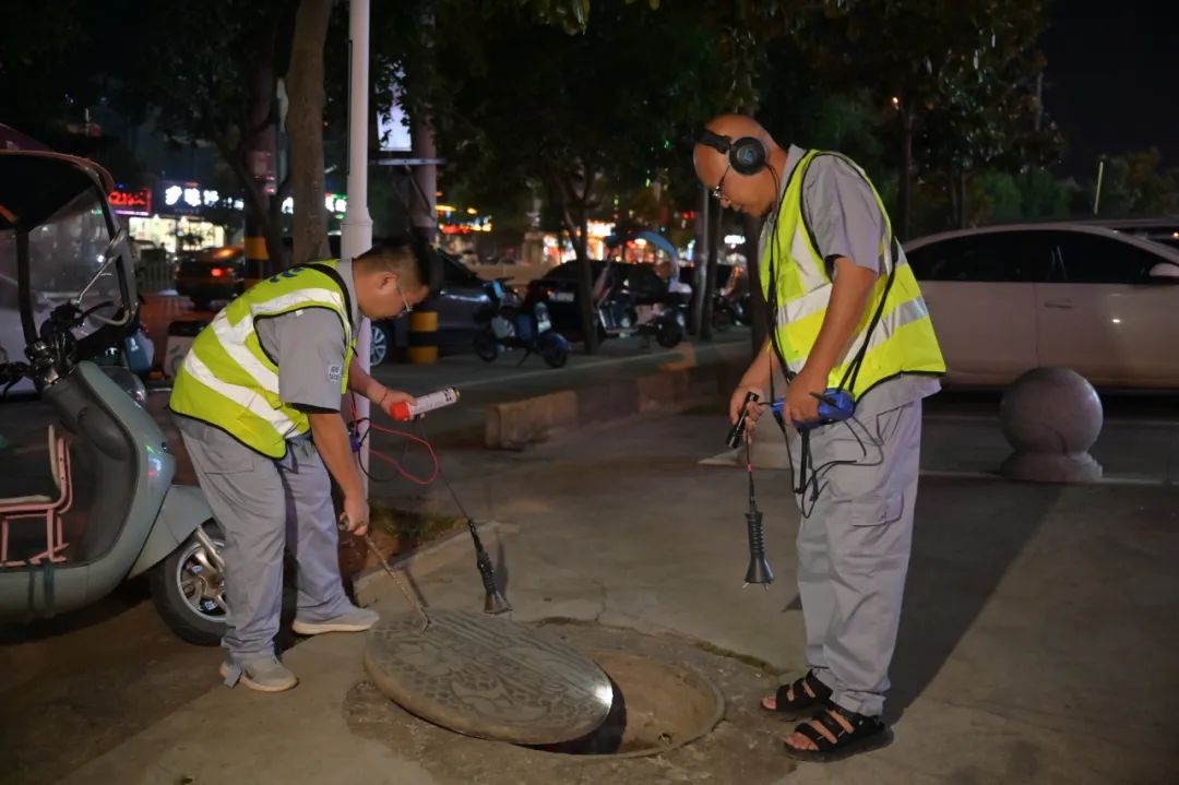 火“熱”奮戰(zhàn),加強(qiáng)管網(wǎng)巡查 為進(jìn)一步保障城區(qū)供水管網(wǎng)運(yùn)行安全,及時(shí)發(fā)現(xiàn)管道暗漏點(diǎn),咸寧聯(lián)合水務(wù)管網(wǎng)探漏人員在炎炎夏日,沿著城區(qū)大街小巷對(duì)供水管道進(jìn)行“體檢”。有時(shí),需要安靜、車流量小的環(huán)境,他們就選擇深夜出動(dòng),一手拿著聽音桿,一手拿著手電筒,利用儀器檢聽供水管網(wǎng)運(yùn)行情況,為能迅速判斷是否漏水以及精準(zhǔn)定位漏水點(diǎn),有時(shí)需要反復(fù)探測十幾次,力爭將各類管道漏水隱患扼殺在萌芽中。同時(shí),在供水高峰期,探漏人員還將常態(tài)化開展管網(wǎng)巡查,將責(zé)任層層落實(shí)到個(gè)人,力求件件有人管,項(xiàng)項(xiàng)有落實(shí),事事出成效,保障供水管網(wǎng)的運(yùn)行安全穩(wěn)定。