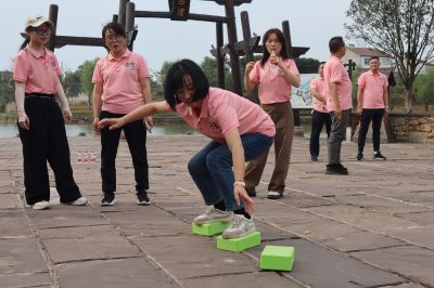 上午9時(shí),團(tuán)建隊(duì)伍在荊州公司廠區(qū)門口集合,統(tǒng)一乘車奔赴此次的活動(dòng)目的地—莫愁村。一路上,大家歡聲笑語(yǔ),熱情高漲,興致勃勃。經(jīng)過兩個(gè)半小時(shí)的車程,團(tuán)建隊(duì)伍抵達(dá)了本次團(tuán)建活動(dòng)的第一站——莫愁村景區(qū)。下午14時(shí),我們整裝待發(fā),前往本次熔煉團(tuán)隊(duì)的場(chǎng)所-莫愁屯廣場(chǎng)。古老神圣的場(chǎng)地與熱血奮發(fā)的團(tuán)隊(duì)完美適配。工作小組緊鑼密鼓布置場(chǎng)地,講述團(tuán)建項(xiàng)目規(guī)則和要求,全情投入的熔煉之賽在“抱團(tuán)取暖”分組游戲中開拔啟航。 在荊州公司總經(jīng)理鄭彬的指導(dǎo)下,我們先后開展了無敵風(fēng)火輪、珠行萬里、摸石過河三項(xiàng)團(tuán)體競(jìng)賽項(xiàng)目。無敵風(fēng)火輪培養(yǎng)了隊(duì)員團(tuán)結(jié)一致,密切合作,克服困難的團(tuán)隊(duì)精神,加強(qiáng)了服從指揮、一絲不茍的工作態(tài)度。珠行萬里中隊(duì)員們能強(qiáng)烈感受團(tuán)隊(duì)間有效的緊密配合、有序銜接,大家自發(fā)為共同的目的以及團(tuán)隊(duì)的責(zé)任感做好每一個(gè)環(huán)節(jié)。最具挑戰(zhàn)的當(dāng)屬摸石過河,它是耐心和速度的較量,既提高了團(tuán)隊(duì)協(xié)作能力和戰(zhàn)略戰(zhàn)術(shù),又訓(xùn)練了團(tuán)隊(duì)內(nèi)部的協(xié)調(diào)能力,增強(qiáng)了隊(duì)員間的相互信任和理解。