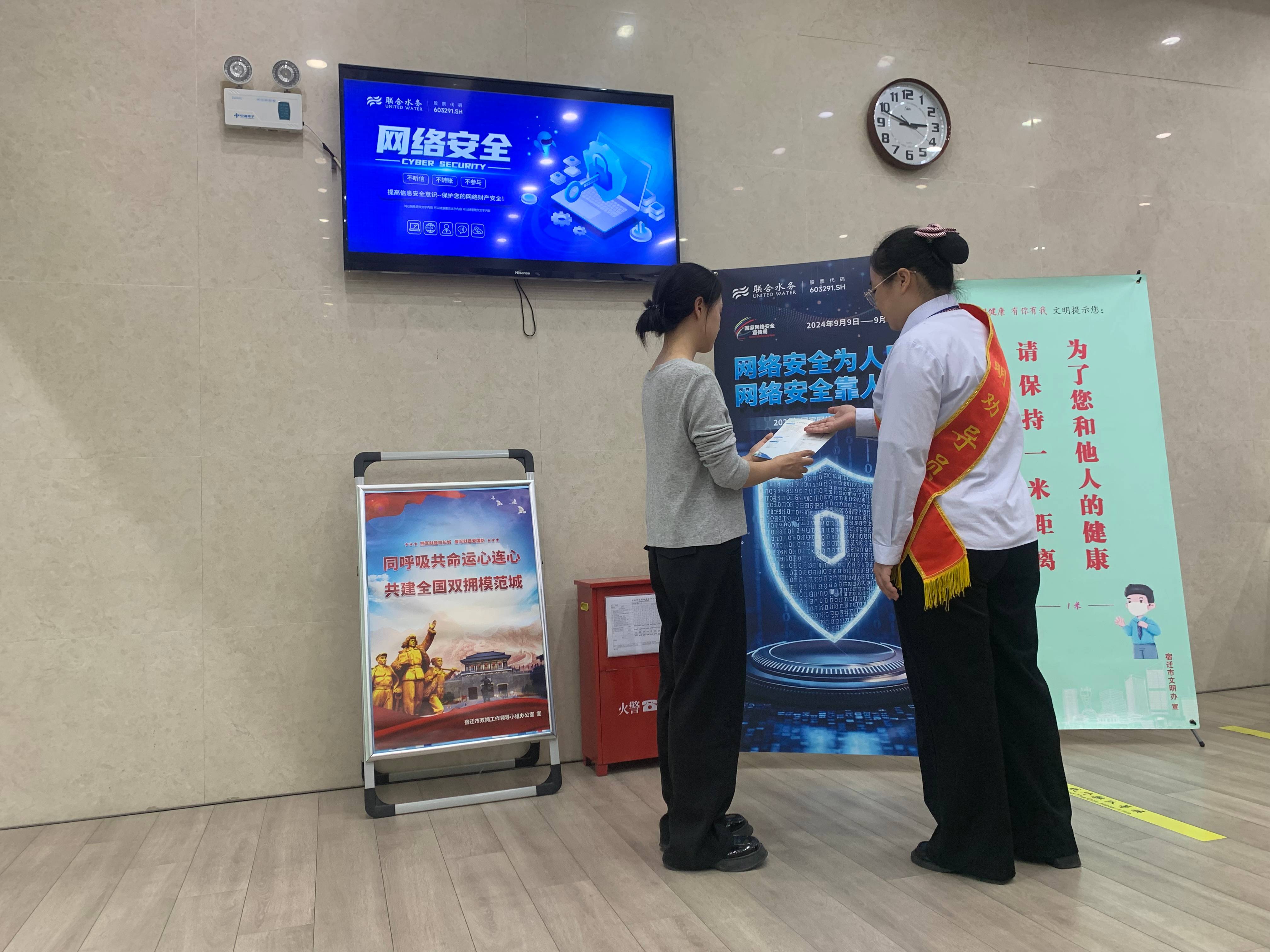 9月9日至9月15日是“2024年國(guó)家網(wǎng)絡(luò)安全宣傳周”。為增強(qiáng)公眾網(wǎng)絡(luò)安全意識(shí),提高網(wǎng)絡(luò)安全防護(hù)技能,創(chuàng)造安全穩(wěn)定的網(wǎng)絡(luò)環(huán)境,聯(lián)合水務(wù)宿遷供水公司多措并舉開展了以“網(wǎng)絡(luò)安全為人民,網(wǎng)絡(luò)安全靠人民”為主題的網(wǎng)絡(luò)安全宣傳周活動(dòng)。