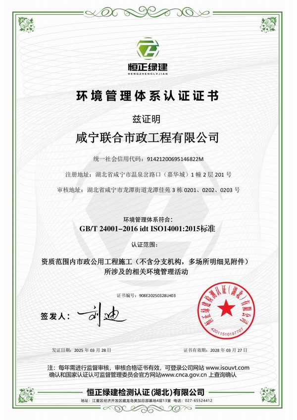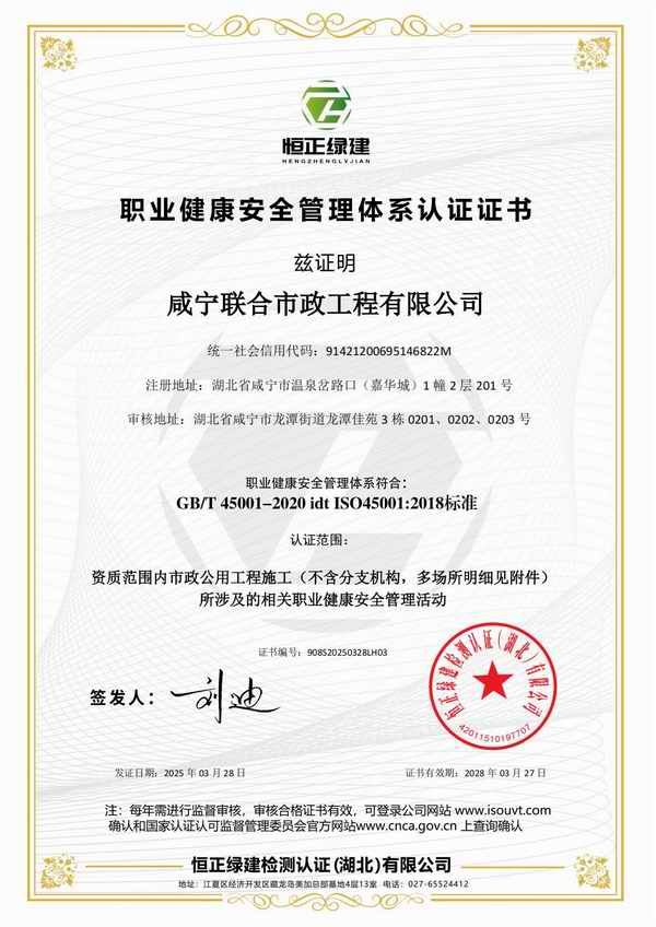 未來,咸寧聯(lián)合市政工程有限公司將繼續(xù)堅持高標準、嚴要求,不斷優(yōu)化和完善三大體系,提升公司的服務(wù)質(zhì)量和環(huán)境管理水平,保障員工的職業(yè)健康安全。同時,公司也將積極履行社會責任,為咸寧市的市政建設(shè)和城市發(fā)展做出更大的貢獻。