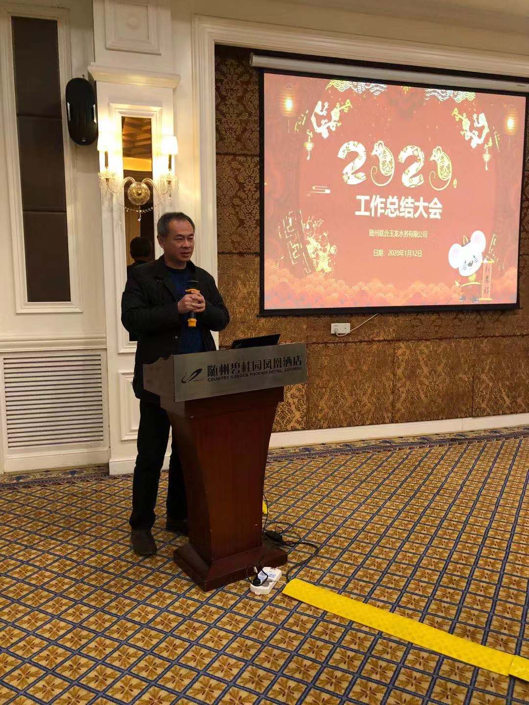 金豬搖尾辭舊歲,玉鼠探頭迎新春。 在年終歲首、辭舊迎新之際,曾隨大地剛剛經(jīng)歷初雪的洗禮。雪后初霽、冬寒刺骨,戶外三九時節(jié)、北風凜冽,但隨州鳳凰酒店日內(nèi)瓦廳室內(nèi)華燈璀璨、流光溢彩、熠熠生輝、春意融融!2020年1月12日,隨州聯(lián)合玉龍水務有限公司2019年度年終總結(jié)大會在這里隆重舉行。 總結(jié)過去,謀劃未來。 聯(lián)合水務集團高級副總裁劉猛、人力資源行政部總經(jīng)理楊麗霞、采購總監(jiān)曹雷千里迢迢、不辭辛苦出席會議。在隨州公司總經(jīng)理鄭總熱情洋溢的開幕詞中總結(jié)大會正式開始。 會議首先從觀看隨州公司宣傳片中拉開帷幕。看著以往朝夕相處、無比熟悉的公司場景驟然以視頻的形式出現(xiàn)在大家眼前,大家既親切又自豪!更有一種“擼起袖子加油干”立即奔赴崗位、再接再厲為公司再做貢獻的豪情與沖動。 接著,總經(jīng)理助理朱總從生產(chǎn)技術(shù)的角度在大會發(fā)言,緊扣“四內(nèi)憂、五外患、六解決”的重點闡述了生產(chǎn)模塊過去一年的工作情況及工作計劃。 隨后,鄭總就隨州公司過去一年的工作進行發(fā)言。突出已有成績,面對的挑戰(zhàn),也毫不避諱存在的問題,更是列出了2020年的5個工作重點。希望全員力出一孔,利出一孔,讓隨州公司2020年開創(chuàng)一個新局面。 之后,劉總做總結(jié)性發(fā)言。劉總在上臺第一時間就做出俏皮的手勢擺出一個很酷的pose主動要求攝影留念,立刻活躍了整個會場的氣氛。劉總現(xiàn)場講了“三新兩好一要求”。