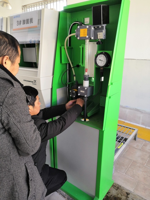 近期,王英水廠在年前設(shè)備檢修中,發(fā)現(xiàn)4#加氯機(jī)浮子流量計(jì)有異常現(xiàn)象,浮子上下跳動(dòng)不規(guī)律,有時(shí)完全上浮不起來,影響到加氯量穩(wěn)定性。為保證制水生產(chǎn)安全,機(jī)電設(shè)備部立即組織技術(shù)人員,對(duì)該加氯機(jī)進(jìn)行檢修。 詳細(xì)觀察后,開始認(rèn)為是加氯管道堵塞,拆開管道未看到異物,氯氣進(jìn)出管道沒有看到懷疑點(diǎn),進(jìn)而對(duì)加氯機(jī)內(nèi)部進(jìn)行研究;逐一對(duì)連接件進(jìn)行拆解測試,最后判斷出故障點(diǎn)應(yīng)在減壓調(diào)節(jié)器上。該調(diào)節(jié)器結(jié)構(gòu)各真空調(diào)節(jié)器相似,估計(jì)是調(diào)節(jié)器內(nèi)部膜片覆蓋的腔體間進(jìn)氣不通暢,導(dǎo)致氯氣無法與調(diào)節(jié)器穩(wěn)定、通暢輸出。 維修人員將現(xiàn)場情況與設(shè)備售后工程師溝進(jìn)行通,給出意見可能是調(diào)節(jié)器內(nèi)有殘?jiān)愇铮氯惑w連通孔。小心翼翼拆開后果然看到里面有不少粉末性殘?jiān),整個(gè)膜片上附著一層鐵銹灰一樣?xùn)|西,各個(gè)小腔體內(nèi)殘留著褐色粉末。維修人員對(duì)拆解開的減壓調(diào)節(jié)器用溫水細(xì)細(xì)進(jìn)行清洗,然后放在太陽底下曬了幾個(gè)小時(shí),水漬完全干后再安裝到加氯機(jī)上進(jìn)行調(diào)試。加氯管道閥門開啟后,立即恢復(fù)正常運(yùn)行。 經(jīng)過這幾天觀察,該加氯機(jī)再未出來類似故障現(xiàn)象。