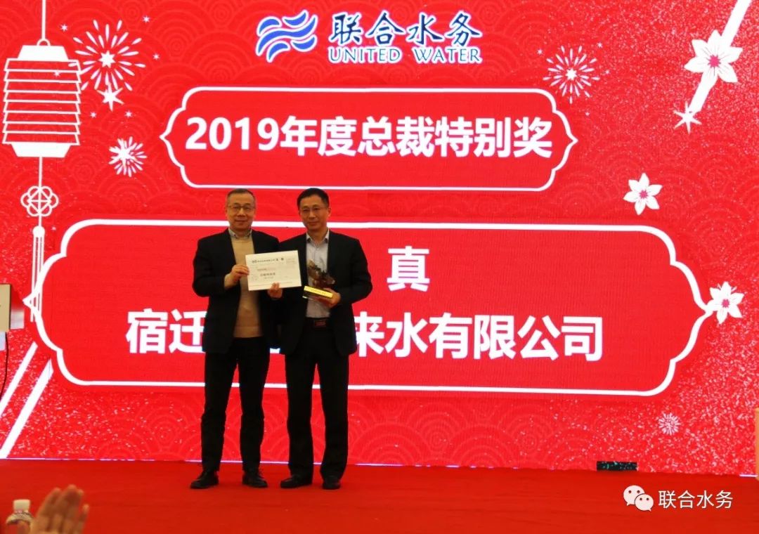 聯(lián)合水務(wù)集團(tuán)董事長(zhǎng)兼總裁俞偉景先生為“總裁特別獎(jiǎng)”獲得者曾真先生頒獎(jiǎng) 2019年是聯(lián)合水務(wù)集團(tuán)極不平凡的一年,各項(xiàng)業(yè)績(jī)突飛猛進(jìn),行業(yè)地位和社會(huì)影響日益突出。在總體經(jīng)濟(jì)形勢(shì)不利的大環(huán)境下,集團(tuán)公司各模塊、北方區(qū)、華中區(qū)、華南區(qū)、海外項(xiàng)目幾大區(qū)域的各項(xiàng)目公司擯除萬(wàn)難、勠力進(jìn)取,均取得了長(zhǎng)足的發(fā)展;集團(tuán)超額完成全年預(yù)算指標(biāo),發(fā)展勢(shì)頭強(qiáng)勁;吐故納新,事業(yè)版圖穩(wěn)步上升,新創(chuàng)建了三個(gè)優(yōu)質(zhì)的項(xiàng)目公司;業(yè)務(wù)領(lǐng)域有了質(zhì)的飛躍,邁出了跨越供水、污水傳統(tǒng)水務(wù)行業(yè)、進(jìn)入水環(huán)境治理全新領(lǐng)域的堅(jiān)實(shí)一步;孟加拉國(guó)首都達(dá)卡市Purbachal新城供水及配水設(shè)施開(kāi)發(fā)PPP項(xiàng)目成功簽約并已開(kāi)啟前期建設(shè),開(kāi)拓海外市場(chǎng)、進(jìn)軍海外首戰(zhàn)告捷,一鳴驚人;上市各項(xiàng)工作穩(wěn)步有序推進(jìn),為明年成功上市打下了堅(jiān)實(shí)基礎(chǔ)。 會(huì)議最后,集團(tuán)董事長(zhǎng)兼總裁俞偉景先生發(fā)表總結(jié)講話。俞總裁首先肯定了一年來(lái)各區(qū)域、各項(xiàng)目公司的努力和所取得的業(yè)績(jī),感謝全體員工對(duì)集團(tuán)發(fā)展所做出的貢獻(xiàn),希望各項(xiàng)目公司再接再厲、不忘初心、砥礪前行。俞總帶大家回顧2018年年會(huì)所述三大任務(wù):全力增收、全面發(fā)展、A股上市,時(shí)隔兩年,俞總裁向大家亮出了驕人的成績(jī)單。2019年全集團(tuán)營(yíng)業(yè)收入、老舊賬款回收成果顯著;輕重結(jié)合,投資并購(gòu)新項(xiàng)目、進(jìn)入水環(huán)境治理新業(yè)務(wù)領(lǐng)域、開(kāi)拓海外市場(chǎng),公司得到了全面快速發(fā)展;歷年的良好業(yè)績(jī),讓上市工作一路穩(wěn)步推進(jìn),已經(jīng)到了收官階段。全體員工以忠誠(chéng)、努力與執(zhí)行力助力集團(tuán)公司實(shí)現(xiàn)了一個(gè)又一個(gè)發(fā)展目標(biāo)。成績(jī)屬于過(guò)去的輝煌,面對(duì)未來(lái),更要正視不足,持續(xù)改進(jìn)。最后,俞總裁勉勵(lì)大家,2020年是決戰(zhàn)之年,上市不是終極目標(biāo),只是我們發(fā)展過(guò)程中的重要里程碑,只要我們始終踐行“團(tuán)結(jié)誠(chéng)信、拼搏共贏”的企業(yè)發(fā)展理念,我們就一定能實(shí)現(xiàn)我們使聯(lián)合水務(wù)成為一家GREAT(偉大的)水務(wù)公司的夢(mèng)想!