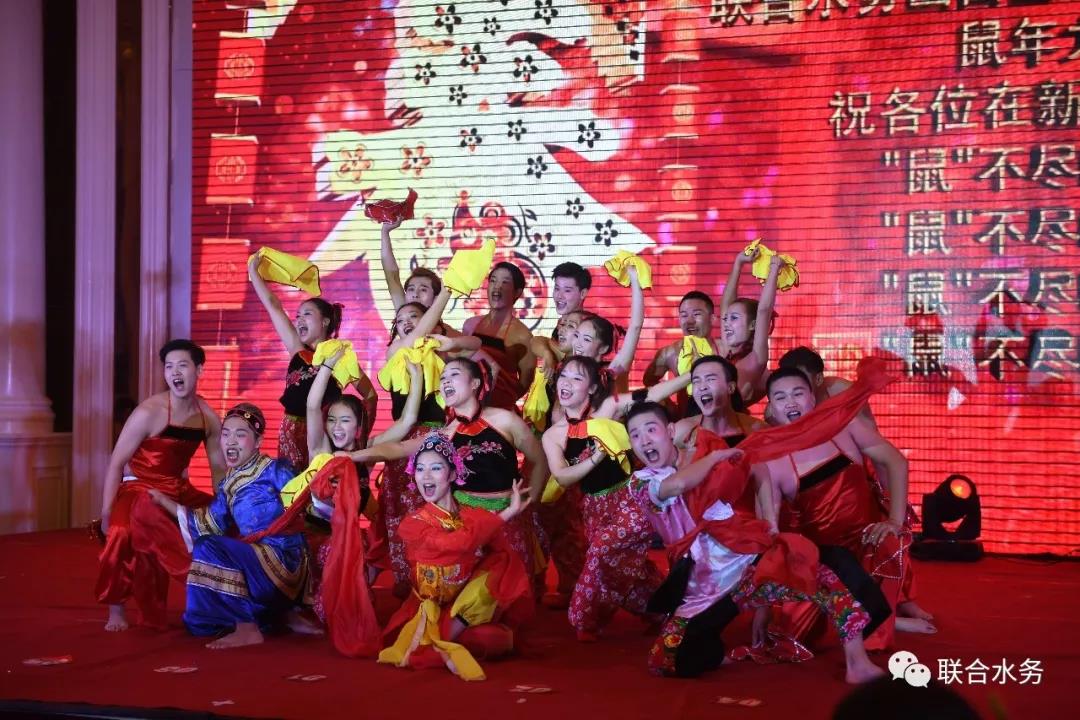 全集團(tuán)2019年度37位先進(jìn)員工上臺(tái)領(lǐng)獎(jiǎng) 晚會(huì)的喜慶氣氛越來(lái)越濃烈,聯(lián)合水務(wù)員工們自編自演了五彩繽紛的文藝節(jié)目,現(xiàn)場(chǎng)仿佛一片歡樂(lè)的海洋!爸﹂g新綠一重重,小蕾深藏?cái)?shù)點(diǎn)紅”,微醺拂面人欲醉,點(diǎn)點(diǎn)芳菲春漸濃。由宿遷公司帶來(lái)的大型舞蹈《海棠春色》,好似帶領(lǐng)大家游走在春的繽紛中,優(yōu)美動(dòng)人的舞蹈構(gòu)筑出一幅花光明麗,遠(yuǎn)山近水、鳥(niǎo)語(yǔ)蟬鳴的雅致唯美春色畫(huà)卷。山西區(qū)域表演的山西民間舞蹈《醋之韻》,將勞動(dòng)人民在山西地肥水美的好風(fēng)光下,釀醋、戀醋的勞動(dòng)場(chǎng)景演繹的淋漓盡致,讓人迫不及待一品醋之韻味。明日燦爛輝煌依舊守望,今日艱巨的責(zé)任不敢怠慢。伴隨著一陣神秘的音樂(lè),一顆美麗的星球出現(xiàn)在觀眾眼前,音樂(lè)漸漸沉重,這顆美麗的星球即將滿目瘡痍,就在所有人都陷入哀痛和沉思之時(shí),畫(huà)風(fēng)突變,藍(lán)天白云,河流清澈,鳥(niǎo)飛魚(yú)躍,臺(tái)上演員的舞蹈也隨之歡快起來(lái),這是由隨州公司表演的《碧水藍(lán)天》,展示了聯(lián)合水務(wù)千方百計(jì)惜水、愛(ài)水、護(hù)水的責(zé)任擔(dān)當(dāng)。歌聲裊裊辭舊歲,舞姿翩翩賀新年。瑞昌公司的節(jié)目《祥瑞昌盛》通過(guò)翻飛的彩扇,跳動(dòng)的舞步,舞出吉祥昌盛的日子;歡快的節(jié)奏,活潑的舞姿,靈動(dòng)的身軀,山西區(qū)域帶來(lái)的《歡歡喜喜過(guò)大年》將現(xiàn)場(chǎng)氣氛再掀高潮;而三門(mén)峽公司帶來(lái)的舞蹈《紙扇書(shū)生》,將晚會(huì)氣氛帶入只屬于中國(guó)人的風(fēng)趣儒雅,熱情洋溢中;一曲耳熟能詳?shù)摹恫菰脑铝痢奉D時(shí)開(kāi)啟了北國(guó)風(fēng)光無(wú)限好的境界,悠揚(yáng)的歌聲,婀娜的舞蹈,仿佛帶領(lǐng)大家進(jìn)入到了最美的夢(mèng)鄉(xiāng);若說(shuō)曼妙舞姿已讓全場(chǎng)觀眾沸騰,那由桐鄉(xiāng)公司表演的相聲《長(zhǎng)壽論》,更是讓大家捧腹大笑。 萬(wàn)里之船,成于羅盤(pán)。聯(lián)合水務(wù)集團(tuán)的乘風(fēng)破浪、奮勇直前,正是因?yàn)榧瘓F(tuán)領(lǐng)導(dǎo)和員工的同心同德、同甘共苦。由集團(tuán)領(lǐng)導(dǎo)班子帶來(lái)的歌舞串燒《舞林大會(huì)》點(diǎn)燃全場(chǎng),平時(shí)工作中威風(fēng)凜凜的領(lǐng)導(dǎo)班子,突然化身成為優(yōu)雅紳士的舞者,風(fēng)度翩翩;引吭高歌的歌者,熱情高昂。現(xiàn)場(chǎng)觀眾手中揮舞的熒光棒與動(dòng)人的華爾茲融合為一,如夢(mèng)如幻,韻味十足,給觀眾帶來(lái)別翻視覺(jué)享受和聽(tīng)覺(jué)享受,贏得現(xiàn)場(chǎng)觀眾的陣陣掌聲和喝彩。