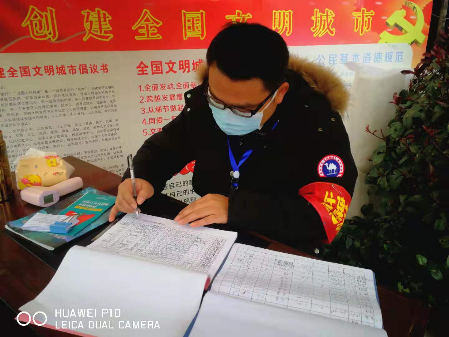 圖1:志愿者陳治坤正在登記外出人員信息 阻擊疫情,逆行守護(hù)。志愿者陳治坤是咸寧聯(lián)合市政公司的造價(jià)總監(jiān),在本次志愿者的召集中,他積極參與,主動(dòng)擔(dān)當(dāng),在第一時(shí)間向公司提出要參與疫情一線防控工作。他值守的銀泉社區(qū)綠洲灣小區(qū),目前入住約200戶,根據(jù)《咸安區(qū)新型冠狀病毒感染的肺炎防控指揮部通告》(第12號(hào)令),每戶家庭每?jī)商炜芍概?名身體強(qiáng)壯成員上街采購(gòu)生活物資,其它人員除生病就醫(yī)、上班外,不得外出。“疫情期間,大部分人都能遵守規(guī)定,但是還是有小部分居民不理解。今天一位外出買菜的阿姨,昨天已經(jīng)登記其外出采購(gòu)了物品,按規(guī)定今天不得外出,但她還是吵著要出去采購(gòu),經(jīng)過我的耐心勸導(dǎo),成功勸返”陳治坤說。