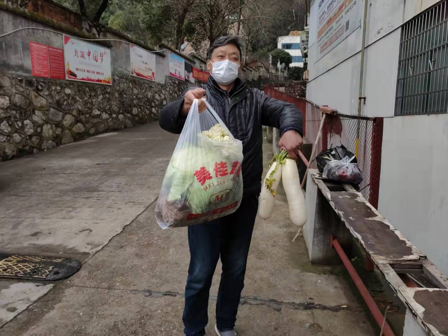 圖3:居民送來的愛心蔬菜 共戰(zhàn)疫情,共守平安。志愿者樊帆和祝恒哲是來自咸寧聯(lián)合水務(wù)公司兩名九零后小伙,值守在清馨苑小區(qū)門口,從早晨七點(diǎn)到晚上八點(diǎn),兩位小伙一刻不停,嚴(yán)格詢問每一位出入人員,登記個(gè)人身份信息,詢問每一輛出入車輛,登記車輛信息及駕駛員個(gè)人身份信息,進(jìn)行體溫測(cè)量……其中,志愿者樊帆是該小區(qū)居民,從值守之日起,他便開啟了“鐵面無私”的工作模式,無論是小區(qū)內(nèi)關(guān)系較好的朋友或是鄰居,凡是不符合外出規(guī)定的,統(tǒng)統(tǒng)在他那吃了閉門羹.