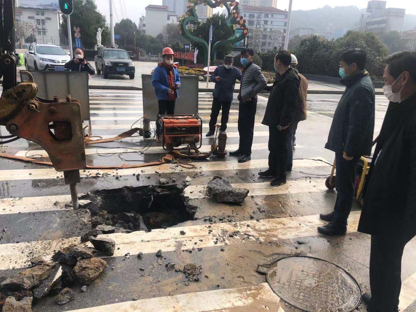 圖3:搶修保供水 1月31日上午,永安城區(qū)南山十字路口DN400供水主管因天氣寒冷、管網(wǎng)老化導(dǎo)致爆破。咸寧聯(lián)合水務(wù)搶修隊(duì)在挖掘機(jī)無(wú)法快速到達(dá)搶修現(xiàn)場(chǎng)的情況下,采用人工開(kāi)挖方式帶水搶修,經(jīng)過(guò)搶修人員的齊心協(xié)力,圓滿(mǎn)完成搶修任務(wù),確保南山片區(qū)居民正常用水。 2月3日上午,市城管執(zhí)法委巡查時(shí)發(fā)現(xiàn)溫泉城區(qū)新二號(hào)橋中行段DN315供水主管爆破。咸寧聯(lián)合水務(wù)有限公司聞?dòng)嵑笱杆賳?dòng)供水搶修應(yīng)急預(yù)案,公司總經(jīng)理毛雄輝和管網(wǎng)分管領(lǐng)導(dǎo)李暉靠前指揮,用最快速度將供水搶修人員、工程車(chē)輛和物資調(diào)配到位,迅速開(kāi)展搶修工作。搶修人員不畏疫情帶來(lái)的困難,不畏嚴(yán)寒,更是來(lái)不及吃中午飯,爭(zhēng)分奪秒實(shí)施搶修,經(jīng)過(guò)3個(gè)多小時(shí)的緊張作業(yè),提前2小時(shí)完成了搶修任務(wù),確保新二號(hào)橋片區(qū)居民正常用水。 眾志成城,共克時(shí)艱,疫情期間,搶修隊(duì)在王德勝和毛義兩位負(fù)責(zé)人的帶領(lǐng)下,共完成搶修工作30余次,他們篤定前行,分秒必爭(zhēng),無(wú)時(shí)無(wú)刻不忘城市供水人身份,始終堅(jiān)守在供水保障第一線,確保工作不斷不亂,平穩(wěn)有序。 志愿擔(dān)當(dāng),服務(wù)社區(qū) 時(shí)有所需,必有所為。咸寧聯(lián)合水務(wù)有限公司在保障城區(qū)正常供水外,公司黨組織還發(fā)揮黨團(tuán)員帶頭作用,組成了一支30余名青年員工的志愿者服務(wù)隊(duì),奔赴城區(qū)21個(gè)物業(yè)小區(qū),協(xié)助小區(qū)物業(yè)開(kāi)展疫情防控工作。