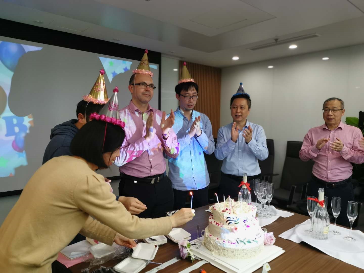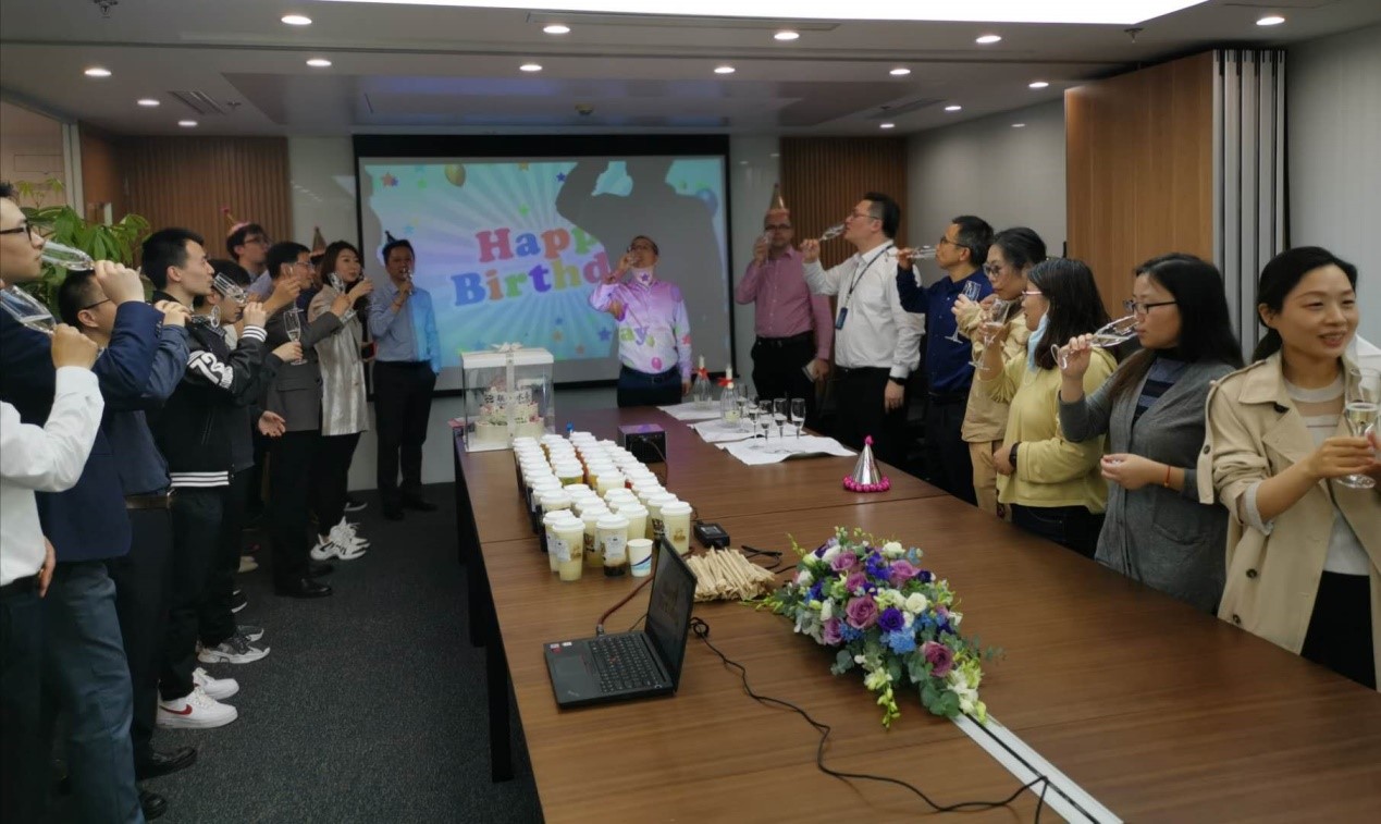 最是一年春好處,絶勝花柳滿門廳。伴著和煦的春風(fēng),趁著“五一”的來臨,聯(lián)合水務(wù)集團總部新辦公室落成慶典隆重舉行,同期舉辦2020年一季度總部員工集體生日慶;顒印 2020年4月29日下午,活動在聯(lián)合水務(wù)集團上?偛啃略鲂卵b的南豐城16樓辦公室舉行。聯(lián)合水務(wù)集團董事長兼總裁俞偉景先生、聯(lián)合水務(wù)集團高級副總裁劉猛先生、聯(lián)合水務(wù)集團高級副總裁陳樵先生、聯(lián)合水務(wù)集團高級副總裁兼CFO James Beeson先生、上?偛咳w常駐員工、孟加拉項目公司部分員工共同參與了此次慶典暨生日慶祝活動。
