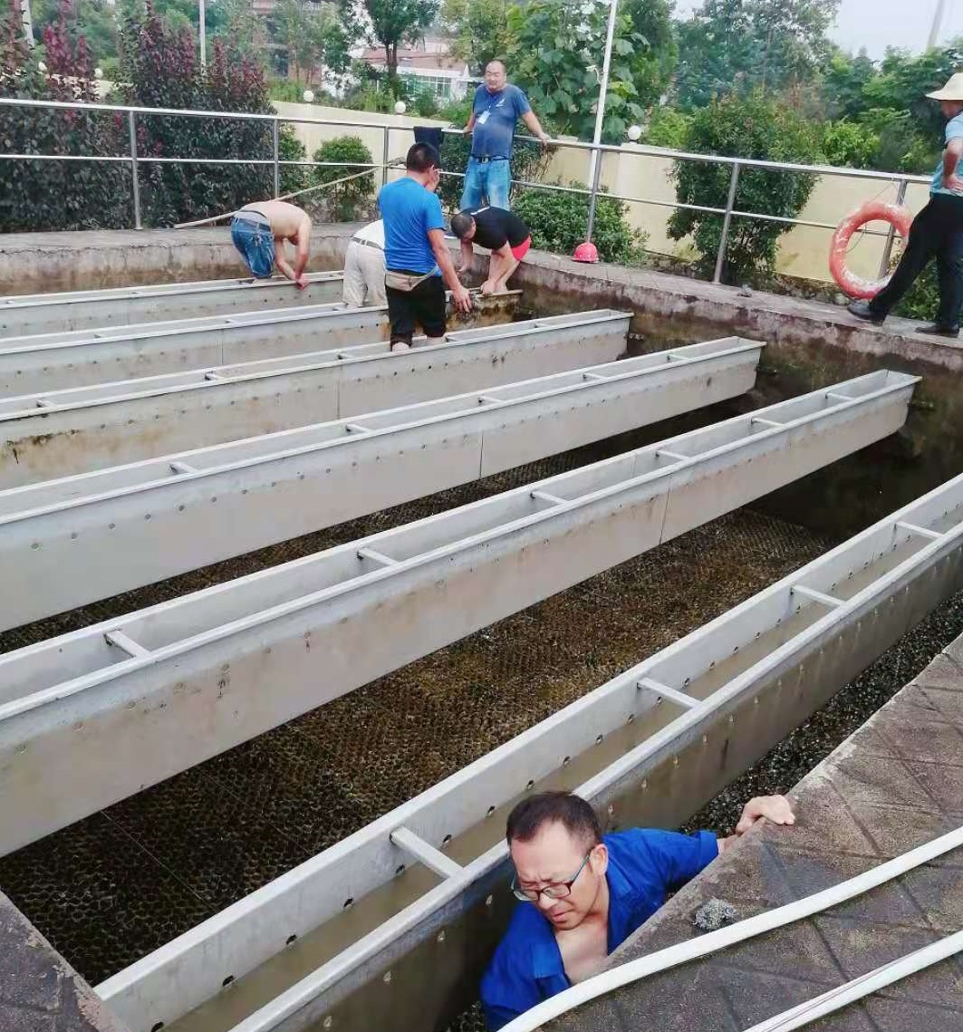 7月初,咸寧思源水務(wù)有限公司組織共產(chǎn)黨員、中層骨干、管網(wǎng)部和客服部等多名員工,分區(qū)分工逐步清洗多個(gè)制水池。經(jīng)過多小時(shí)的連續(xù)奮戰(zhàn),圓滿完成橫溝思源水廠方格絮凝池、斜管沉淀池、虹吸濾池等制水池的全面排空、清洗和消毒,共清洗水池容積約1400多立方。在制水源頭確保了夏季用水高峰期的水質(zhì)安全。