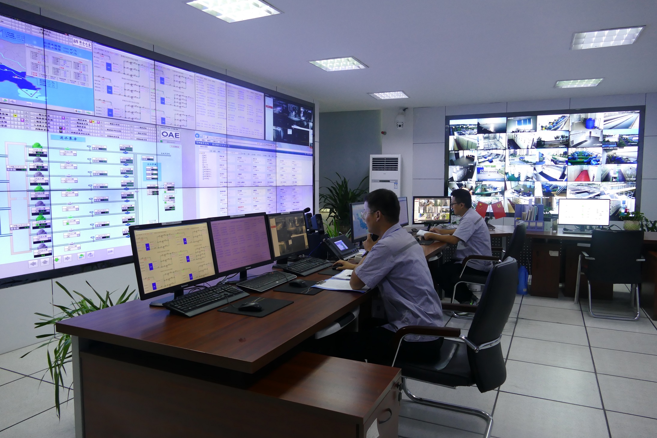 圖4:水檢人員做水質化驗 調度中心把好“供水科學調度”關 隨著供水規(guī)模的不斷擴大,公司斥資一百多萬元對調度中心進行了整裝重修,更換了液晶數字大屏,直觀、實時、全方位顯示各種信息,包括工藝控制、供水管網信息、二次供水信息、視頻監(jiān)控等。調度中心實行24小時人員值守,充分發(fā)揮供水“大腦中樞”的重要作用。供水調度人員,每天都要時刻關注著電腦和電子大屏上的數據參數,一旦發(fā)現異常,立即匯報。看屏幕久了,眼睛生澀,疼痛難忍,但是,因為心中有責任,他們心無旁騖,堅守崗位,確保每一滴水的科學優(yōu)化分配。