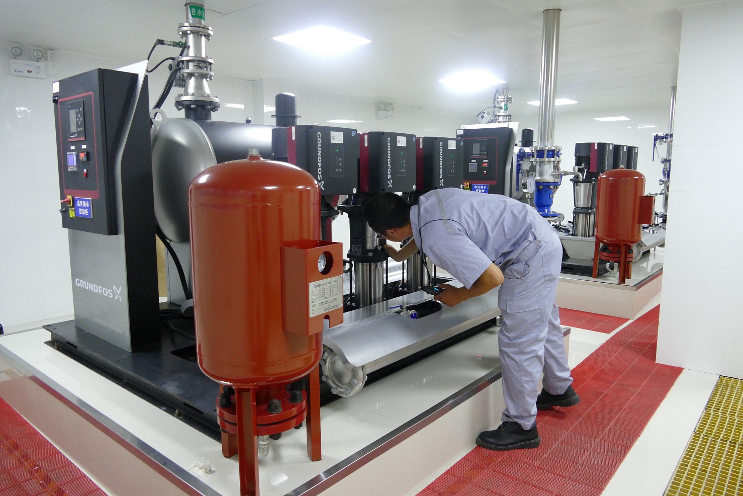 圖2:生產人員巡檢 機電設備部把好“設備安全”關 每年的高峰供水來臨前,宿遷銀控自來水有限公司都會制定詳實的設備保養(yǎng)、維護、改造計劃,確保各項設備運行狀況良好,同時要求,在高峰供水期間,每日要對機組進行加密巡檢,特別是對易產生高溫運轉的設備進行專項養(yǎng)護。目前該公司需檢測、檢修的主要、重要設備遍布于兩個水廠、7座泵站共1257臺,工作人員根據片區(qū),不間斷進行巡查。除了點巡檢,機電設備部所有人員排班進行夜間值班,保證24小時在廠,出現設備問題立即解決,保障生產安全。
