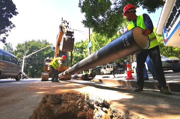管網(wǎng)改造 8月7日下午,在市區(qū)潭惠路街道,咸寧聯(lián)合水務(wù)工程部施工人員正在赤日炎炎下進行供水主管的鋪設(shè)工作。由于該路段交通繁忙,人流量和車流量較大,且地下管線密布交錯復(fù)雜,為管網(wǎng)改造工作帶來巨大難度,但施工人員不畏困難、不懼酷暑,以滿身汗水加快管網(wǎng)改造速度。 近年來,咸寧聯(lián)合水務(wù)結(jié)合主城區(qū)用戶發(fā)展需求,按照“輕重緩急、分類梳理”的原則,制定了老舊供水管網(wǎng)改造計劃,城區(qū)老舊供水管網(wǎng)的更新改造工作逐步推進。今年預(yù)計投入800萬元對市區(qū)十余條道路的老舊供水管網(wǎng)進行升級改造。目前已完成月亮灣路和潭惠路老舊管網(wǎng)的改造,極大改善了居民用水質(zhì)量,提升了群眾幸福感。 高溫保供水,咸寧聯(lián)合水務(wù)供水人日夜奮戰(zhàn),全力以赴。他們或頭頂烈日,抗戰(zhàn)高溫酷暑;或置身泥水,忍受蚊蟲叮咬;或挑燈夜戰(zhàn),不懼艱苦疲倦。默默用汗水和奉獻描繪著聯(lián)合水務(wù)人城市保供水的精彩畫卷。 |