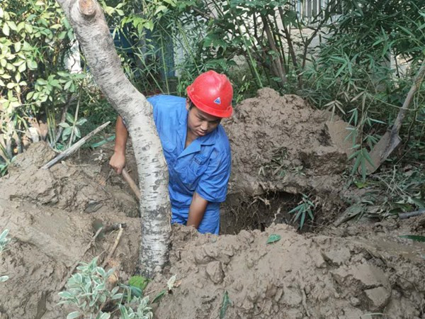“天階夜色涼如水,臥看牽?椗恰。七夕已至,夜猶未涼?崾罹t遲不愿離去,仍然煥發(fā)著三十多度的“高漲熱情”,催人汗流,莫不是也在等待這天上人間鵲橋一會?!聯(lián)合水務人將這份對美好生活的向往,化作斗酷暑戰(zhàn)高溫的力量,彰顯聯(lián)合水務精神,擔當供水護水責任,將絲絲清泉送入千家萬戶,使滴滴污水變條條清渠,護衛(wèi)著一座座城市命脈。 遙寄銀河喜相會,守護人間浪漫情!捌呦Α惫(jié),聯(lián)合水務人這樣度過。 盤根錯節(jié)間抽繭剝絲忙搶修。老舊小區(qū)的管道鋪設往往無章可循,隱匿于綠化樹下的比比皆是。宿遷銀控供水公司管網(wǎng)部的馬振接到報修后,緊急趕往府苑小區(qū)現(xiàn)場,水從一片竹林滲出,成片綠植生長多年,根系發(fā)達且盤根錯節(jié),只能人工用鐵鍬一點點開挖查找漏水點,身上、臉上是汗水,褲腿是泥水,和著稀泥,樹根很滑,一根根挖斷,慢慢剝離出管道,緊急搶修好,帶著一身泥濘,趕赴下一個搶修點。