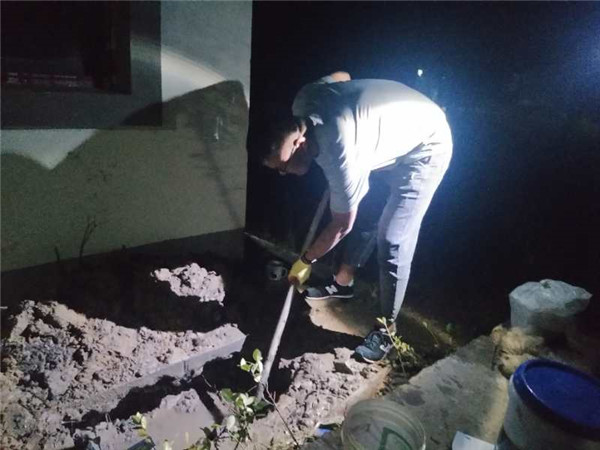 李鵬 揮汗如雨斷除違章用水,保障良好用水秩序。8月25日凌晨二點,宿遷市耿車鎮(zhèn),宿遷銀控供水公司稽查部稽查員苗帥巡查工程中,發(fā)現(xiàn)了私接城鄉(xiāng)供水主管道的偷盜水行為,為確保周邊水壓不受影響,伴著昏黃的燈光、蚊蟲叮咬,緊急現(xiàn)場開挖斷除私接管道。