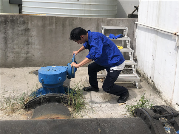 苗帥 烈日下堅守,保障污水生產安全。污水凈化回用,還城市一份潔凈的世界,給市民一個清涼的夏日。桐鄉(xiāng)污水公司生產部運行工顧振賢像往日一樣仔細巡查著生產區(qū),閥門有些松動的跡象,安全生產不可馬虎,一定要防微杜漸,立即找來工具,使出渾身的力氣,擰一擰,緊一緊,終于可以放心。汗水濕透衣背,這是最美的“蹲馬步”。