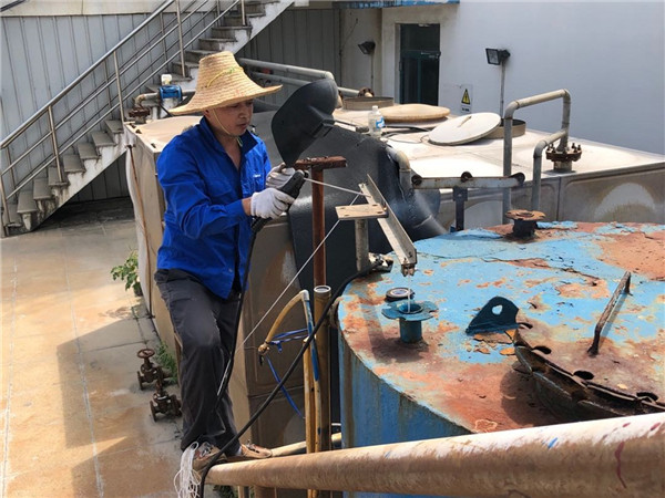 顧振賢 驕陽下的焊接作業(yè),設備維修時不我待。接到生產巡檢人員的報修信息,需要焊接作業(yè),正午的點,驕陽炙烤。桐鄉(xiāng)污水公司機電部機修工沈新學可顧不了那么多,設備安全事關生產安全,維修一刻也不能等。抓起一簾草帽,背起焊接工具箱,直奔維修點。駕輕就熟,開始作業(yè),汗珠一顆顆從臉頰、身上滾落,一刻也不曾停歇。