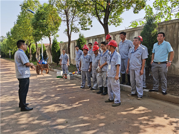 安全生產(chǎn)是企業(yè)生存發(fā)展之根本。 五黃六月,烈日炎炎、暑氣逼人,有毒有害氣體極易積聚,自6月份以來,國(guó)內(nèi)多家化工企業(yè)以及與化工有關(guān)的污水處理企業(yè)等多次發(fā)生有限空間作業(yè)中毒窒息事故,有限空間作業(yè)安全事故已成為化工類企業(yè)的重大安全隱患。作為荊州經(jīng)濟(jì)技術(shù)開發(fā)區(qū)唯一的工業(yè)污水處理專營(yíng)企業(yè),為有效預(yù)防和避免公司生產(chǎn)經(jīng)營(yíng)過程中各類有限空間作業(yè)事故的發(fā)生,保證安全穩(wěn)定的生產(chǎn),建立緊急情況下迅速、科學(xué)、高效地組織事故搶險(xiǎn)、救援和應(yīng)急機(jī)制,減少事故的影響和損失,杜絕類似安全事故的發(fā)生,8月27日,聯(lián)合水務(wù)荊州項(xiàng)目公司組織開展了有限空間作業(yè)事故應(yīng)急演練。公司總經(jīng)理許應(yīng)濤、人事行政副總經(jīng)理劉斌等領(lǐng)導(dǎo)全程參與演練,充分顯示了公司對(duì)安生生產(chǎn)的高度重視。 演練前,工藝技術(shù)經(jīng)理王臣帶領(lǐng)生產(chǎn)部門全體員工進(jìn)行了有限空間作業(yè)安全培訓(xùn),對(duì)事前制定的演練預(yù)案進(jìn)行了詳解及分組討論,并針對(duì)7月份進(jìn)行的一次預(yù)演訓(xùn)練中出現(xiàn)的問題進(jìn)行了總結(jié)和方案的改進(jìn),應(yīng)急小組再次認(rèn)真確定演練方案后,仔細(xì)研究各個(gè)應(yīng)急處理流程,分配模擬任務(wù)及安排崗位角色,讓全體參與人員熟知演練過程并牢記于心。