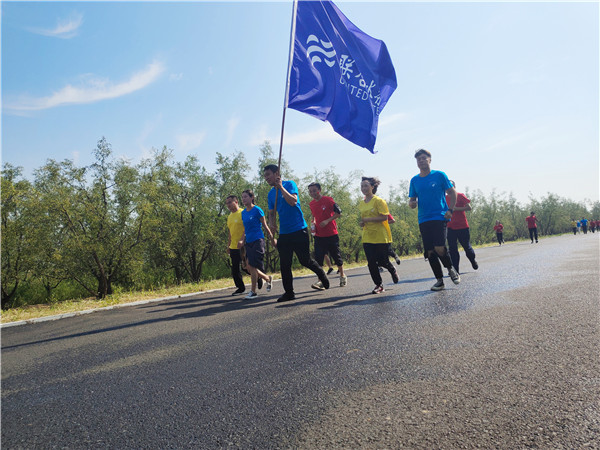 (圖1:聯(lián)合水務(wù)真“精彩”) 上午10:00,隨著主辦方領(lǐng)導(dǎo)一聲令下,參與活動(dòng)的運(yùn)動(dòng)達(dá)人們沿著黃河廊道開始奔跑,來(lái)自三門峽聯(lián)合水務(wù)的12名運(yùn)動(dòng)健兒,揮舞著聯(lián)合水務(wù)集團(tuán)旗幟,欣賞著明清古棗林至老城渡口沿途多姿多彩的美景。聯(lián)合水務(wù)團(tuán)隊(duì)成員英姿颯爽的身影和過(guò)硬的身體素質(zhì)一路上獲贊無(wú)數(shù),三門峽聯(lián)合水務(wù)的風(fēng)采讓大眾印象深刻,用實(shí)際行動(dòng)傳揚(yáng)聯(lián)合水務(wù)集團(tuán)“團(tuán)結(jié)誠(chéng)信 拼搏 共贏”的企業(yè)文化。