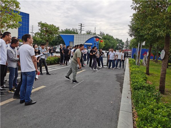 在這桂花飄香、秋風(fēng)送爽的美好時(shí)節(jié),我們迎來(lái)了偉大祖國(guó)的71歲生日。帶著驕傲與自豪,舉國(guó)歡騰,共慶盛世華年。9月29日,在聯(lián)合水務(wù)宿遷供水公司第二水廠,吶喊聲、助威聲、歡聲笑語(yǔ)匯聚成歡樂(lè)的海洋,這里正在舉行一場(chǎng)別開(kāi)生面的國(guó)慶佳節(jié)慶;顒(dòng)——“迎國(guó)慶”員工趣味活動(dòng)。來(lái)自公司各分公司、各部門(mén)的200多名員工,參與了各項(xiàng)賽事的角逐,人事行政副總經(jīng)理陳少軍、客服運(yùn)營(yíng)副總經(jīng)理尹邦交、客戶服務(wù)總監(jiān)郁莉、總經(jīng)理助理薛江寧親臨現(xiàn)場(chǎng),為參賽選手們加油、助威。 今年的國(guó)慶活動(dòng)共4個(gè)項(xiàng)目,分上、下午兩場(chǎng)。上午舉行的是單人項(xiàng)目投飛鏢和團(tuán)體項(xiàng)目單腳跑火車,下午舉行的是頂球跑和拔河,活動(dòng)地點(diǎn)在辦公樓前廣場(chǎng)。大紅燈籠高高掛,火紅的橫幅拉起來(lái),國(guó)慶節(jié)氛圍營(yíng)造,讓人激情澎湃,辦公樓上“團(tuán)結(jié)、誠(chéng)信、拼搏、共贏”的企業(yè)精神催人奮進(jìn)。 上午9:00,陽(yáng)光明媚,秋意盈人,活動(dòng)正式拉開(kāi)序幕。第一個(gè)項(xiàng)目是單人項(xiàng)目投飛鏢。參賽選手不分男女,投鏢距離3米,每人投3次,成績(jī)累計(jì)為個(gè)人總成績(jī)。此項(xiàng)目趣味性強(qiáng),參與度廣,多達(dá)130人報(bào)名參加。比賽分兩個(gè)隊(duì)同時(shí)進(jìn)行,大家秩序井然,水平參差不齊,高手連中三個(gè)9環(huán),引來(lái)掌聲不斷,投空的也不在少數(shù),如“蚯蚓走姥姥家”——七拐八拐就是不往靶盤(pán)上去,有跟樹(shù)過(guò)不去的,有飛入草坪的,引來(lái)陣陣哄笑,好不熱鬧。最終,龍河服務(wù)中心的劉賽以27環(huán)的總成績(jī)摘得桂冠。