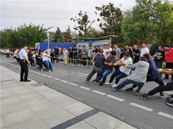 圖3:頂球跑 最后一個(gè)項(xiàng)目是團(tuán)體項(xiàng)目“拔河比賽”,這也是每年的傳統(tǒng)保留項(xiàng)目。比賽共分4隊(duì):工程公司聯(lián)隊(duì)、生產(chǎn)技術(shù)聯(lián)隊(duì)、客服運(yùn)營(yíng)聯(lián)隊(duì)及綜合聯(lián)隊(duì),每隊(duì)15人(女隊(duì)員不低于5人),采取抽簽方式捉對(duì) “廝殺”,三局兩勝,在兩組勝方中再?zèng)Q出冠、亞軍。經(jīng)過(guò)第一輪比賽,綜合聯(lián)隊(duì)、工程公司聯(lián)隊(duì)惜敗,生產(chǎn)技術(shù)聯(lián)隊(duì)、客服運(yùn)營(yíng)聯(lián)隊(duì)晉級(jí)。接下來(lái),就是冠軍爭(zhēng)奪戰(zhàn),兩個(gè)強(qiáng)隊(duì)狹路相逢,強(qiáng)強(qiáng)對(duì)決,勢(shì)均力敵,難分勝負(fù)。雙方隊(duì)員都憋足了一股勁,欲“決一死戰(zhàn)”。一聲令下,決賽開(kāi)始,一場(chǎng)廝殺在所難免,現(xiàn)場(chǎng)進(jìn)入白熱化狀態(tài),吶喊聲、助威聲響徹云霄。盡管生產(chǎn)技術(shù)的猛將們已拼盡全力,奈何對(duì)手實(shí)力雄厚,最終,象征勝利的掛繩越過(guò)標(biāo)線,敗下陣來(lái),客服運(yùn)營(yíng)聯(lián)隊(duì)以2:0的絕對(duì)優(yōu)勢(shì)奪冠。精彩仍在持續(xù),在大家的倡議下,第一輪惜敗的綜合聯(lián)隊(duì)、工程公司聯(lián)隊(duì)決定為榮譽(yù)再殺一場(chǎng),爭(zhēng)奪季軍、殿軍。拉開(kāi)陣勢(shì),拼勁全力,第一局綜合聯(lián)隊(duì)輕松獲勝,頓時(shí)沾沾自喜;第二局工程公司看“敵方”有所放松,覺(jué)得有機(jī)可乘,雙方實(shí)力相當(dāng),僵持不下,最終反敗為勝;第三局,綜合聯(lián)隊(duì)迅速調(diào)整狀態(tài),再不可“大意失荊州”,認(rèn)真應(yīng)戰(zhàn),又扳回一局,三局兩勝,取得季軍。