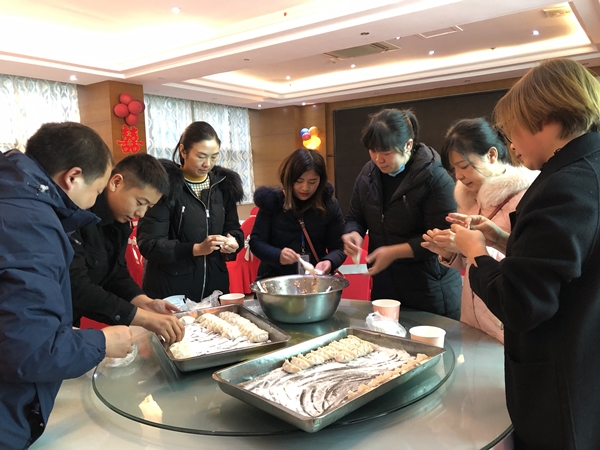 圖/ 座談會后的合影 在感恩節(jié)座談會活動的最后,公司人力資源部經(jīng)理陳紅為員工代表頒發(fā)感恩賀卡和感恩節(jié)小禮品,以期廣大員工在工作上繼續(xù)保持良好的心態(tài),不斷學習,與時俱進。 為進一步回饋公司員工的辛勤付出,公司組織了感恩節(jié)包餃子活動。大家興致高昂,洗菜、切菜、和面、搟皮等一套動作下來,不一會兒,一個個圓鼓鼓的餃子整齊地排列開來。晚餐時,鮮香的餃子從滾滾的熱水中出鍋,品嘗著自己親手包的餃子,大家的喜悅之情溢于言表。