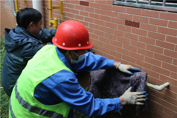 圖/ 管網(wǎng)維修現(xiàn)場(chǎng) 數(shù)九寒冬,咸寧城區(qū)室外溫度只有4℃,咸寧聯(lián)合水務(wù)搶修人員不畏嚴(yán)寒,全力搶修。12月8日上午,在金桂路168號(hào)康元骨科醫(yī)院門前,永安管網(wǎng)分部搶修人員為高效完成搶修任務(wù),附身趴在濕冷的地面,一頭扎進(jìn)基坑中,赤手伸進(jìn)冰冷的管涌水中,將管底的泥沙徒手掏出來,雖然他的手凍得通紅,但他還是一次次把手伸進(jìn)水里細(xì)細(xì)地將管里泥沙掏起,動(dòng)作干脆而利索…… 目前,咸寧聯(lián)合水務(wù)已建立數(shù)支應(yīng)急搶救隊(duì)伍,進(jìn)一步優(yōu)化了《應(yīng)急搶修預(yù)案》,確保發(fā)生突發(fā)事件,做到早發(fā)現(xiàn)、早報(bào)告、早處理、早解決。 創(chuàng)新服務(wù)舉措 提升服務(wù)質(zhì)量 雨雪天氣水表水管容易凍壞,怎樣最大程度減少凍壞頻率?