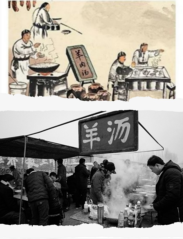 圖:鄉(xiāng)間羊雜懶攤 小時候的記憶里,雜懶只是逢集或者開過年有集會,才能喝到。那種味道,回味起來是無法形容的,F(xiàn)在條件好了,一到冬天,買一副羊下碎(或下水),自己煮雜懶。一副雜懶一家人能吃一個禮拜,配上羊油澆的辣椒,放點胡椒粉,在撒上香菜、蔥絲,那個美啊。一家人坐在一起,喝著熱乎乎的羊湯,其樂融融,好不快哉。