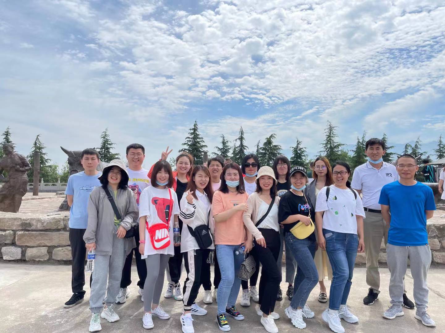生活不止眼前的茍且,還有詩(shī)和遠(yuǎn)方;工作不僅僅局限于公司到家的兩點(diǎn)一線,當(dāng)然還有說走就走的團(tuán)建活動(dòng)。 五月,正式初夏時(shí)節(jié),為了豐富員工的業(yè)余生活,緩解員工的工作壓力,讓員工在工作之余獲得一次徹底放松的機(jī)會(huì),新絳項(xiàng)目公司于2021年5月22日組織了本年度第一次團(tuán)隊(duì)建設(shè)活動(dòng),公司20名員工參加了本次活動(dòng)。一個(gè)人可以走的很快,一群人才能夠走的更遠(yuǎn),讓大家都能積極融入到公司這個(gè)大家庭中來。 經(jīng)歷了暴雨的洗禮,天空中出現(xiàn)了久違的“絳州藍(lán)”,7時(shí)30分,所有人員在指定地點(diǎn)集合后向第1目的地——蒲津渡遺址出發(fā),一路上大家談笑風(fēng)生,盡情在空曠的道路上馳騁。9點(diǎn)所有人員在蒲津渡遺址前集合完畢開展團(tuán)隊(duì)建設(shè)活動(dòng)。本次活動(dòng)分為蒲津渡遺址、黃河大鐵牛講解等參觀。 大家跟隨導(dǎo)游進(jìn)入到展覽館內(nèi)進(jìn)行參觀,了解蒲津渡的歷史發(fā)展,被先人的智慧震撼,駐足良久。
