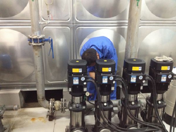 (圖4:二次供水加壓系統(tǒng)巡檢人員對設(shè)備進(jìn)行日常巡檢)