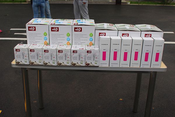 (圖1:活動獎品) “夾花生豆”趣味游戲要求兩人為一組,左手用筷子將花生豆夾至終點。經(jīng)過激烈角逐,寧杰瓊、李國璋組力壓群雄,以4分58拔得頭魁!