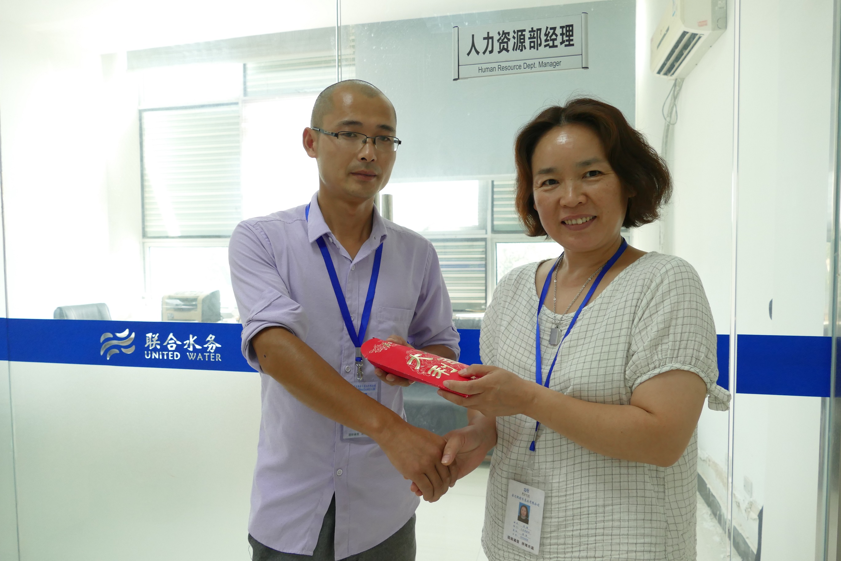 聯(lián)合水務集團董事長兼總裁俞偉景先生得知此情況,立即做出批示:要求在宿遷公司及全集團各兄弟公司發(fā)出捐款號召,愛心接力,并承諾聯(lián)合水務集團兜底,捐款不足部分,由集團公司補足,確保聯(lián)合水務的員工有足夠的錢為其母親支付全額醫(yī)療費。倡議一經(jīng)發(fā)出,聯(lián)合水務集團董事長兼總裁俞偉景先生、高級副總裁劉猛先生、陳樵先生、JamesBeeson先生,副總裁羅斌先生率先垂范捐款獻愛心,近千名聯(lián)合水務人積極響應, 9070元,7500元,5080元,5000元……一筆筆捐款帶著家人般無限的愛與關懷,自全國各地項目公司飛越千山萬水匯聚到宿遷。短短三日,全集團共籌集愛心款73577元,超出了6萬元的募集金額一萬多元,為張用雷一家雪中送炭,為這個身陷病痛困境的家點燃了希望之光、撐起了一方愛的藍天。當宿遷公司人力資源部經(jīng)理吳銘將愛心滿滿的捐款遞交給張用雷的時候,他難掩激動,雙眼濕潤。目前,張用雷的母親已在愛心款的幫助下順利完成了手術,轉入康復期。為表達深深的感激之情,張用雷代表他的母親給公司寫了一篇長長的感謝信,他說,再多的文字都道不盡這份刻骨銘心的感激之情,以后他一定努力工作,報答聯(lián)合水務集團和所有同仁們的深情厚誼。