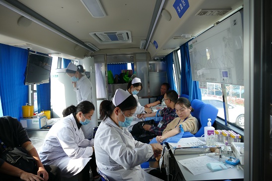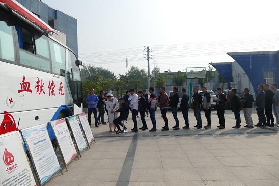 (圖1:獻(xiàn)血前溫馨合影) 10月23日上午,秋陽和煦,溫暖人心。按照事先排定的序列,由路途較遠(yuǎn)的洋河、龍河、皂河三個區(qū)域供水服務(wù)中心第一批次獻(xiàn)血,工程公司員工為第二批次,下午是二水廠各部門及水檢公司人員獻(xiàn)血時間。還未到8:30分,三個中心的同事們便已早早來到了公司第二水廠辦公樓前廣場等候。這一邊血站工作人員對獻(xiàn)血車設(shè)備儀器接電調(diào)試,另一邊大家已經(jīng)在辦公樓大廳里填表、測血壓、心率。原本9:00才開始的活動,因為大家熱情高昂,而提前開始。填好表,初次體檢合格的同事來到獻(xiàn)血車前自動排隊,有序上車進(jìn)行再次體檢及獻(xiàn)血。每個人笑意盈盈,因為心中有愛。今年的獻(xiàn)血活動,除有特殊原因不能參加外,共計有,169人報名,經(jīng)現(xiàn)場測量血壓、心率及進(jìn)行轉(zhuǎn)氨酶等項目血液初篩,最終符合獻(xiàn)血要求的實際獻(xiàn)血人數(shù)為79人,共計獻(xiàn)血量達(dá) 25300ml。